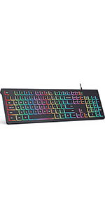Rii RK202 RGB Gaming Keyboard Multiple Color Rainbow LED Backlit USB Wired Gaming Keyboard with Wrist Rest for Windows & Mac PC Gamers (Black)